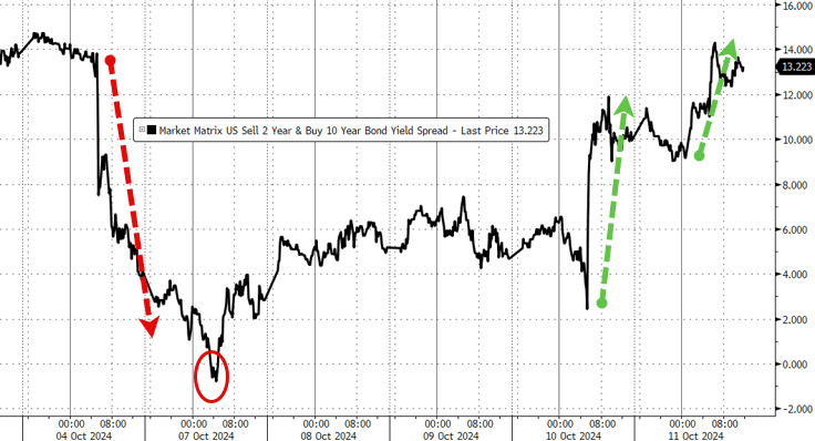 After a huge flattening last week, the yield curve steepened by the most since the start of August this week with 2s10s dropping to inversion to start the week and steepening to erase the post-payrolls plunge by the end…