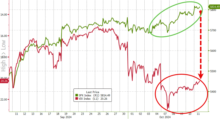 Today saw the 45th all-time-high of the year, but none of the prior 44 have occurred alongside this elevated a level of volatility; this will be the first week of the year where the VIX has closed above 20 every day, and so ongoing elevated risk is expected as we progress through October…