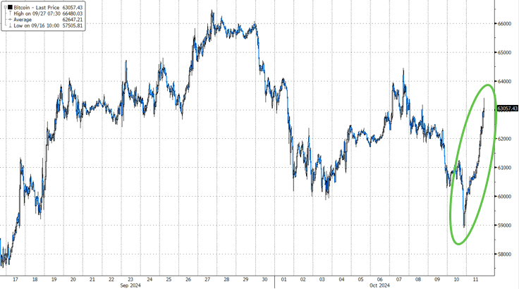 Bitcoin exploded back higher today (from $59,000 to $63,000), to end the week solidly in the green (after testing near one-month lows)…