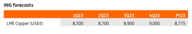 We have increased our 2023 copper price forecast amid China’s reopening optimism, but we maintain a cautious view for the first quarter as Covid cases across China continue to rise. We now see copper prices averaging $8,700/t in the first quarter. We believe any further gains are likely to be capped as the Lunar New Year approaches.